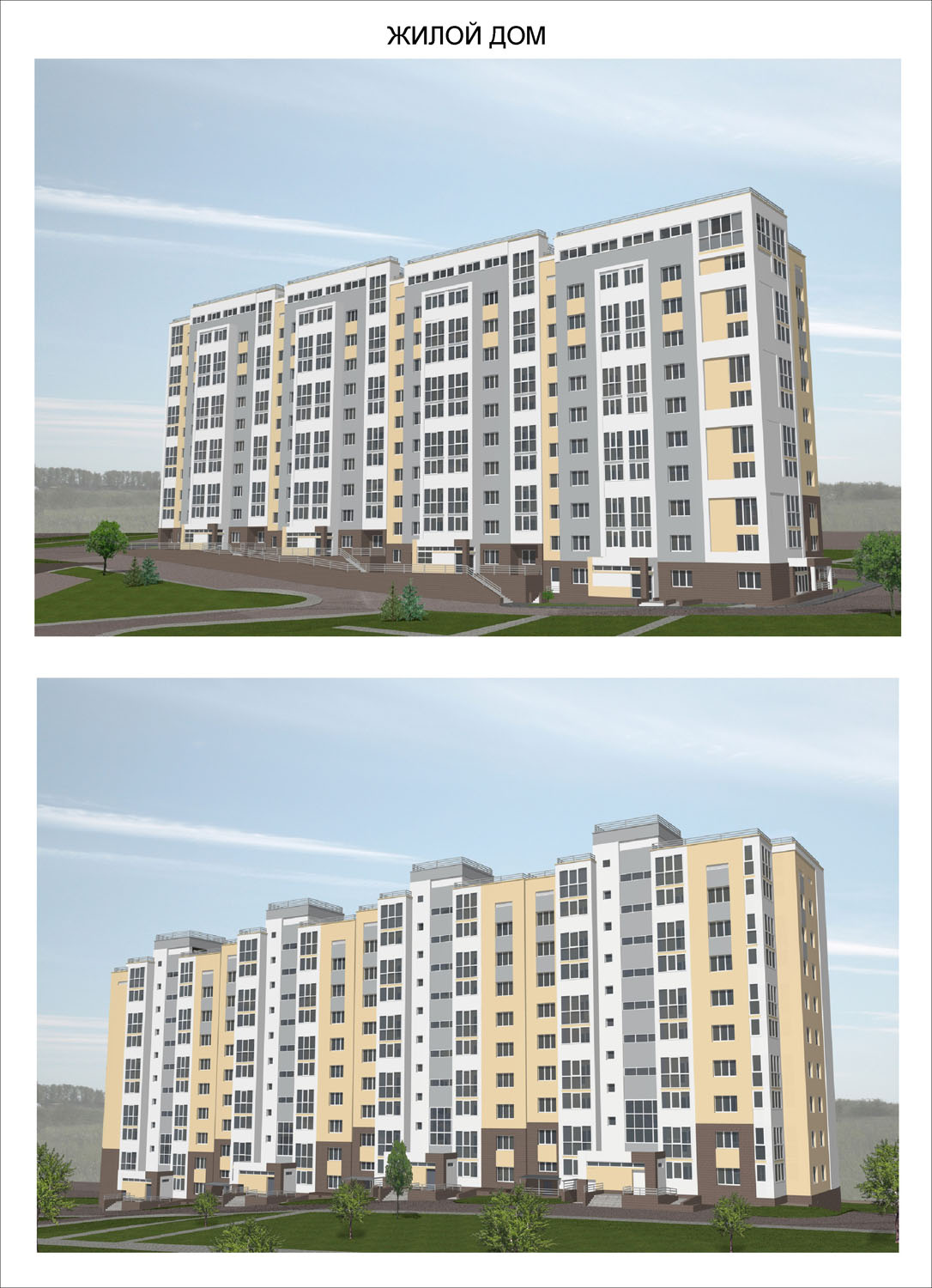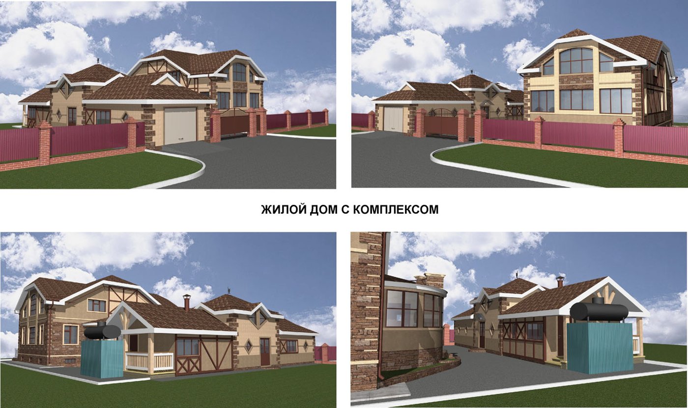 жилой дом 9 этажей, гараж на 120 м/м, коттеджи, административно-бытовые здания средней архитектурной формы и малые архитектурные формы.